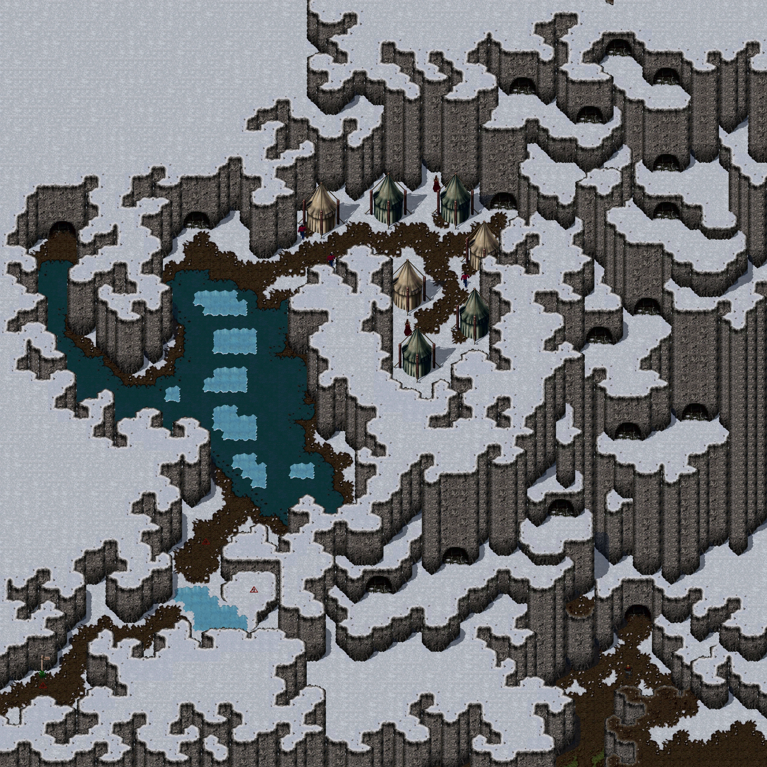 The Stun Dungeon entrance (top middle above the ice floats) on the Oracle's Cave map area