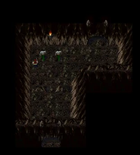 The next chamber consisted of a wide passage heading north before sharply turning east and narrowing, creating an 'r' shape. A short way along the initial wide passage the path bottle-necked between two rocks before widening out to where two Dandy throwers and a Scimitar swordsman awaited. The exit was positioned at the end of the eastern passage on the top wall.[Blood Omen][Blood Omen/5][Blood Omen strategy guide]