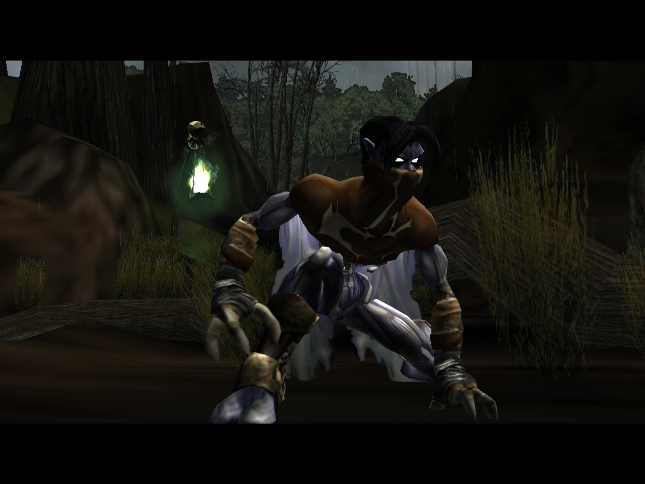 The general environment of the Termogent Forest in Blood Omen consisted of a forested marshland. The area was hemmed in by high cliffs and much it was covered in Water and swampy terrain with occasional patches of grass and many Trees. Skull-shaped lanterns known as Ignis Fatuus were liberally scattered through the area - roughly marking a trail through several dungeons to Vorador's Mansion - and in addition a number of artifacts could be found dotted around the swamp. Several building were positioned in the area in various states of decay and ruin with most apparently abandoned to the swamp - and perhaps suggesting a previous era where the area was more inhabitable. Various enemies could be found inside the buildings of the area, although few ventured out into the swamp which remained the grounds for Zombies and - in the east particularly - Liches and Shadows.[Blood Omen][Blood Omen/6]