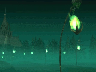 Though hinted to lead in a trail through the forest to Vorador's Mansion, the Ignis Fatuus lanterns actually follow a more complicated pattern. A line leads along the north of the area and heads into the eastern map area - following the spiraling path around to the mansion - however just before it reaches the eastern map a secondary trail of lanterns branches off to the south west towards the three 'keep' dungeons. Presumably this serves to guide the player to visiting each of the keeps before pressing on towards the mansion. The lanterns in further titles only serve as vague guides through their respective areas and the Defiance version is little more than a decorative addition outside the playable map area.[Blood Omen][Blood Omen/6]