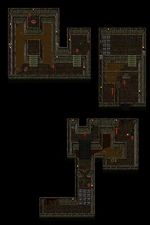 In Blood Omen, the overland forest area is split into two 'overland maps' covering the western and eastern parts of the forest. These areas are labelled in games files as "Map 0001 Sect 43" (or "M000143") for the western area and "Map 0001 Sect 44" for the eastern area, with both under the "Map 0001" designation used for external areas.[Blood Omen][13] In the Prima guide, the western area is referred to as "the Three Keeps", relating to the various ruins in the area, particularly the Flame Sword Dungeon, Control Mind Dungeon and the Blood Gout Dungeon which could all be entered. The eastern area was is noted as "Into the Mansion", relating to the presence of Vorador's Mansion in this map.[Blood Omen strategy guide]