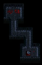 The major dungeons and internal areas of the forest all have their own file designations with "Map 0025" (or "M0025") referring to the Control Mind Dungeon, "Map 0026" referring to the Blood Gout Dungeon, "Map 0030" referring to the Flame Sword Dungeon and "Map 0029" referring to Vorador's Mansion. The remaining minor rooms share designations based on their content: with the Blood fountain room using the same generic appearance and "Map 0010" designation as most other Blood fountains, with this particular variant labelled as "Map 0010 Sect 01"; and the Spirit forges using the "Map 0014" designation used for spirit forges and their antechambers - specifically using "Sect 14" and "Sect 04" for the Energy Bank forge, and "Sect 16" and "Sect 06" for the Anti-toxin forge.[Blood Omen][13]