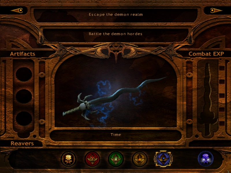 The Time Reaver enhancement was the fifth and final Reaver enhancement gained by Kain in Defiance. Kain found the enhancement in Chapter 9 when exploring the Vampire Citadel, he found his way to the Light Forge and discovered the Time Fragment of the Balance Emblem upgrading its power. With the Balance Emblem complete Kain was able to enter the inner sanctum of the Vampire Citadel.[Defiance][Defiance/9].