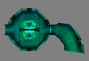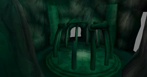 The first Warp gate chamber of the game with its trademark octagonal shape, the chamber served to introduce the concept of warp gates and was Raziel's shortcut back to the rest of the Nosgoth after a return to the Elder God. This chamber also contains some ruins reminiscent of the Lost City and one design is used as the symbol of the area.[Soul Reaver][Soul Reaver/2]