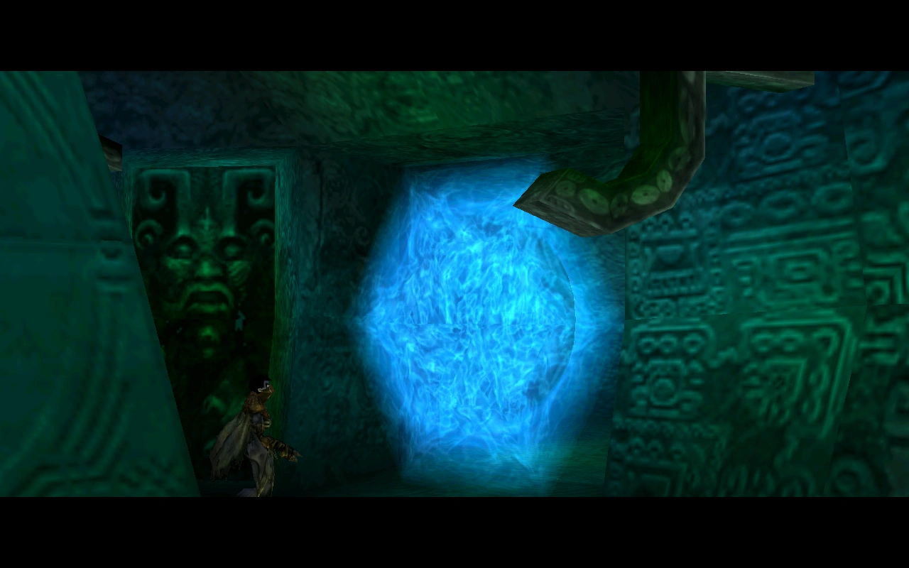 - The Underworld area has a unique Warp gate symbol. Instead of the black and white abstract symbols associated with the other gates the Underworld uses part of the environment - in this case a face relief - to act as a symbol. Another warp gate which could be considered related is the Abyss warp gate which bears an image of a spiral (presumably indicating the whirlpool itself) between the island cliffs used to execute Raziel - this may indicate that the spirals used throughout the series may be thematically inspired by the whirlpool of the Abyss.[Soul Reaver][Soul Reaver/2]