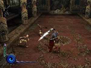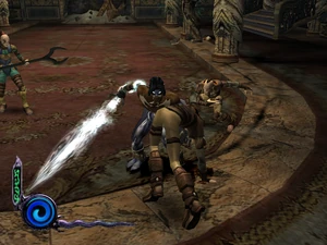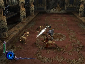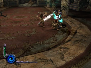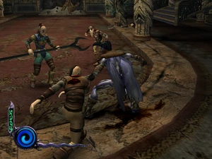 Ascetics were the close range troops of the Vampire hunter faction in Defiance. They were unarmed and instead of weapons they attacked using a series of martial arts-like kicks and spinning blows. They were agile and strong in close-quarters combat and were quick to dodge - although they lacked any ranged attacks they were often able to work together with other ascetics to swarm and overwhelm targets. Their attacking style made them a particular hazard in later chapters. Ascetics were only fought in Raziel's later chapters in the Material Realm in the Blood Omen era and were encountered only in the chapter Battle Kain in Vorador's Mansion.[Defiance][Defiance/12][Defiance strategy guide]