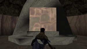 In the alpha versions of Soul Reaver the warp gates lack the distinctive doorway and the warp gates don't use a standard design, instead fitting in much more with the theming of the level they are placed in. Gate symbols are usually simple markings on the walls. In some places gates and their rooms bear placeholder or unfinished textures. Many are either non-functional or difficult to use – and those that do react often have activation patterns that are notably different from retail.