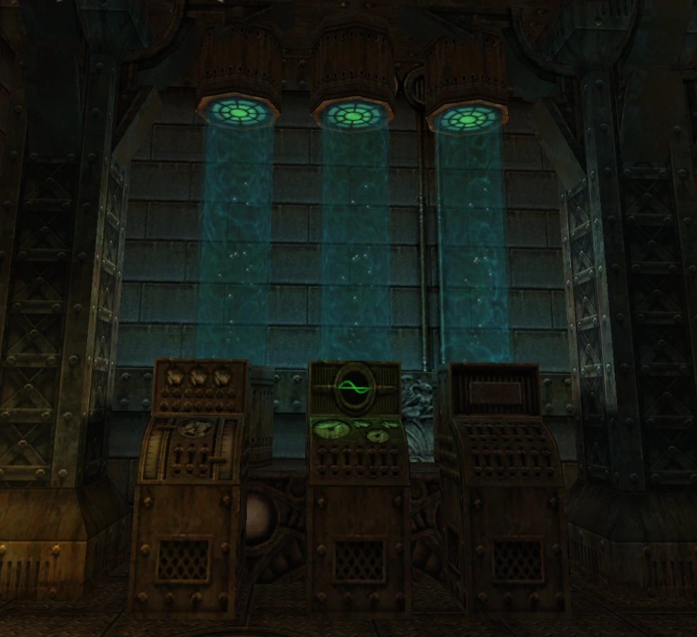↑Raziel:"In the spectral realm, water is as thin as air, putting this opening far beyond my reach. But once I found my way into the material world, I might to able to swim up there…" Crystal Dynamics. Legacy of Kain: Defiance. (Eidos Interactive). PlayStation 2. (November 11, 2003) Transcript.