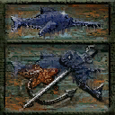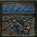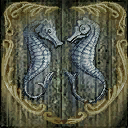Most of the scenery in the Wharves involves wooden 'dockside' areas, though the central marketplace is a notable exception. There are numerous 'businesses' around the docks with several unusual signs; these are all icons and include a fishing net, an anchor, waves, a large dolphin-like creature, an ugly 'goblin' face drinking an ale (this indicates a Tavern, which also features a rare Barmaid NPC), a lighthouse, two seahorses, a strange creature with an elongated snout and a woman wearing a shell bra (possibly a mermaid) . Many of these signs are repeated throughout the level[Blood Omen 2].