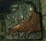The Wharves were primarily a dockside locations, with many seafront activities (including fishing, shipping and trade) visible along the waterfront[Blood Omen 2]. After entering the Marketplace from the main bridge, Kain was able to overhear a Merchant's password[9] and use it to enter the docks,[10][11] (despite Sarafan restrictions due to the fog[12]). As Kain progressed further into the Wharves he manipulated several lighthouses to move ships[13] and on the advice of a Cabal Contact,[14] Kain manipulated the main lighthouse, tricking the Sarafan into lowering the drawbridge so that he was able to enter the Southern Docks.[15][16] A short while inside Kain caught up with Umah (severely injured by a Sarafan Knight ambush) and rejecting her pleas for help, he murdered her for her betrayal.[17] On the advice of Vorador (using the whisper and unaware of Umah's death) Kain released a Greater Demon from its cage and took its place being loaded into a ship bound for the Hylden City.[18][19]