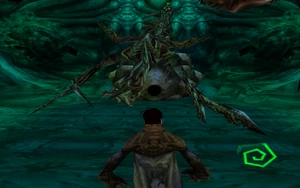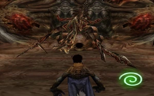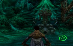 Notably in both alpha and betas there are two side chambers which lead upwards and curve back toward the main chamber. In the early alphas these are open and curve back to give a view of Zephon's side. In later alphas these corridors are shortened and blocked with permeable barriers and organic spouts are added which provide souls for Raziel to consume. This mechanic survives into beta versions where Zephons legs can attack you in the side chambers. Ultimately the chambers were removed for retail.